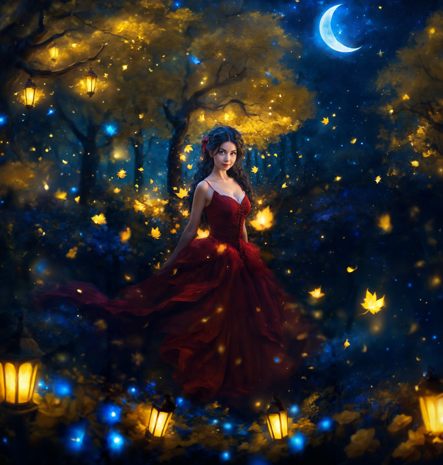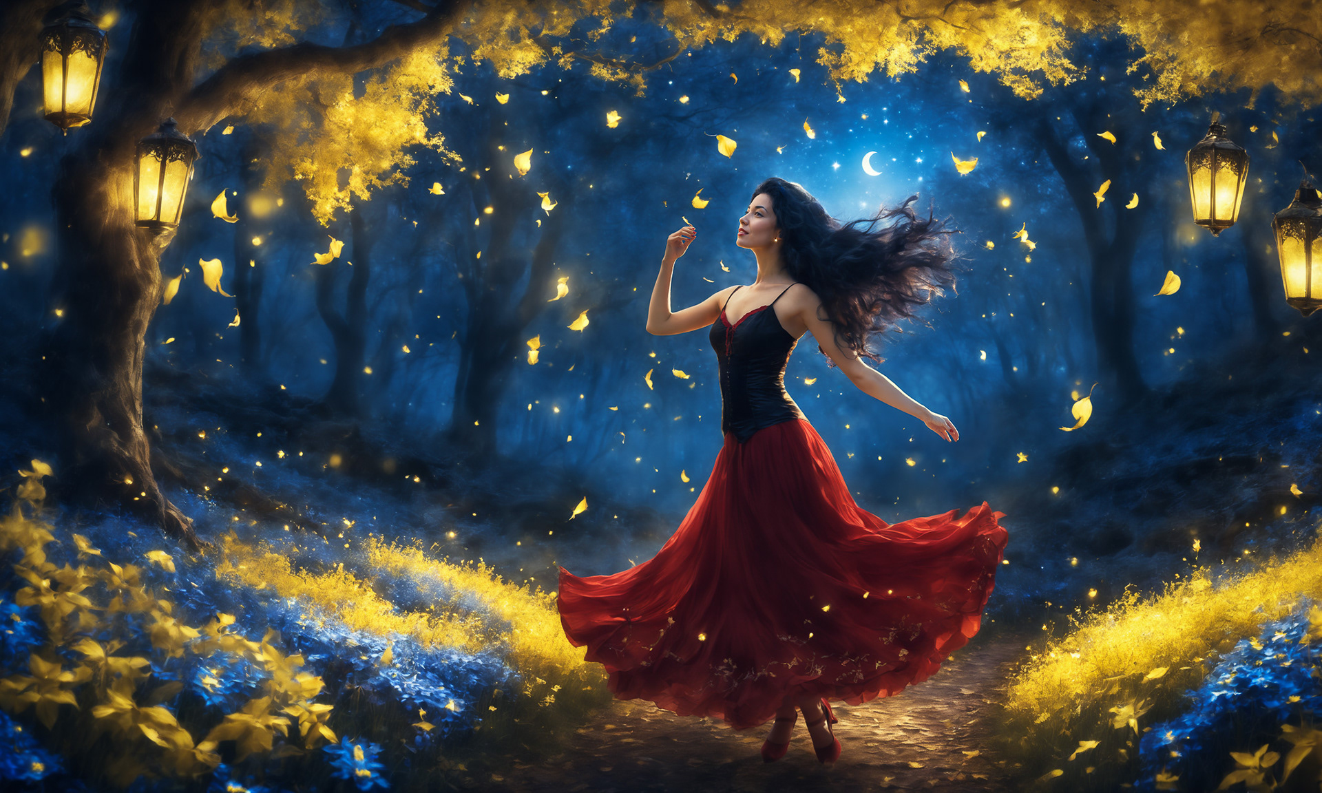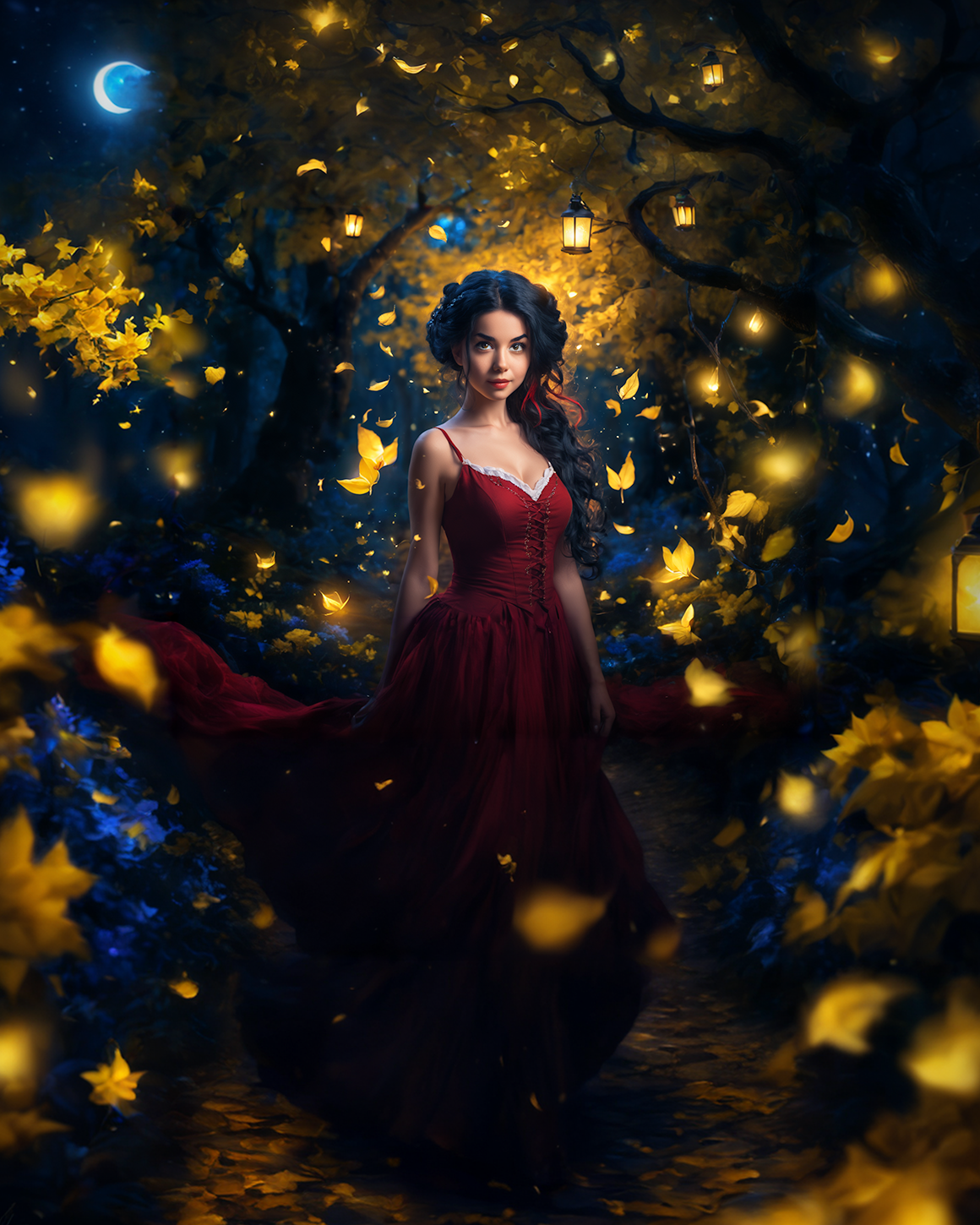 Unless you are pure of heart - then you have nothing to fear. Or a witch. Witches train how to control their dreams and desires and they like to spend their time among the trees of this forest, with it's signature lanterns and yellow and blue flowers.